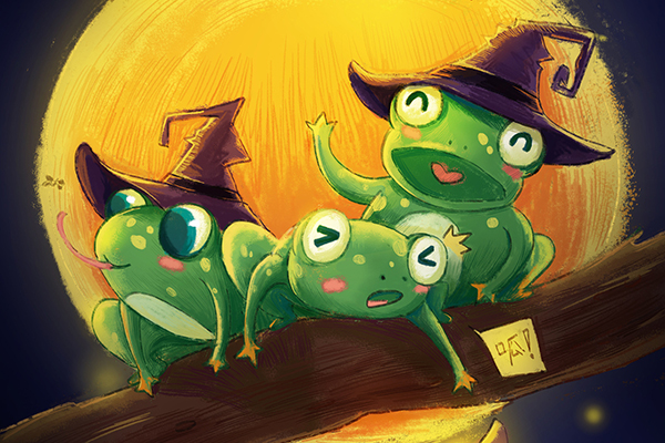 过了一会儿,蛤蟆弟弟跳了过来。小青蛙看见了,呱呱地叫道:“喂,快停下,快停下,和我比比肚子!”