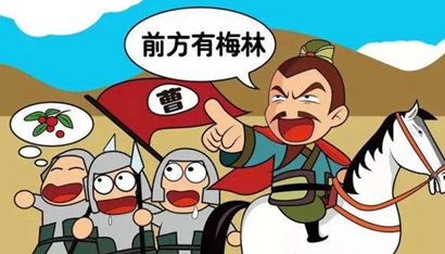 曹操看行军的速度越来越慢,担心贻误战机,心里很是着急。可是,眼下几万人马连水都喝不上,又怎么能加快速度呢?他立刻叫来向导,悄悄问他:“这附近可有水源?”向导摇摇头说:“泉水在山谷的那一边,要绕道过去还有很远的路程。”曹操想了一下说,“不行,时间来不及。”他看了看前边的树林,沉思了一会儿,对向导说:“你什么也别说,我来想办法。”他知道此刻即使下命令要求部队加快速度也无济于事。脑筋一转,办法来了,他一夹马肚子,快速赶到队伍前面,用马鞭指着前方说:“士兵们,我知道前面有一大片梅林,那里的梅子又大又好吃,我们快点赶路,绕过这个山丘就到梅林了!”士兵们一听,仿佛已经吃到嘴里,精神大振,步伐不由得加快了许多。