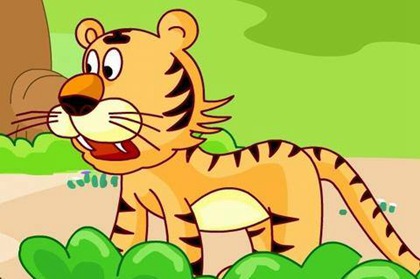 老虎微笑着捋了一下胡子,爬到树上,一跃身就跳到树枝上——老虎哪能抓得住树枝呢,“扑通”一声,四脚朝天地摔在了石头上,摔得哇哇直叫。