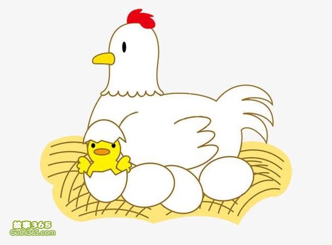 在一户农家的院子里有一只老母鸡,现在母鸡正在孵小鸡,当她发现在自己的鸡蛋里面有一个黑色的鸡蛋时母鸡觉得有些奇怪,心想从来没有下过这么一个鸡蛋呀!难道是自己年龄大了,眼睛花了。自己年纪也不小了,兴许我看错了,于是母鸡又开始孵小鸡了。