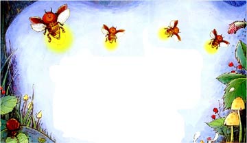 直到黎明来临,萤火虫才回到了它的芦苇丛。它收拢翅膀,心里十分快乐,因为虽然它只是只小虫子,它的灯盏也很小很小。可是,它一样可以把黑漆漆的夜晚照亮。