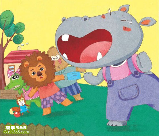 这次大家很容易就想到了答案。此后,动物们每次聚会的时候,都像和河马阿鲁那样,戴上一个口罩。