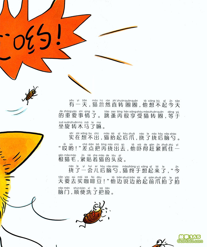 有一天,猫忽然直转圈圈,他想不起今天的重要事情了。跳蚤丙很享受猫转圈,等于坐旋转木马了嘛。