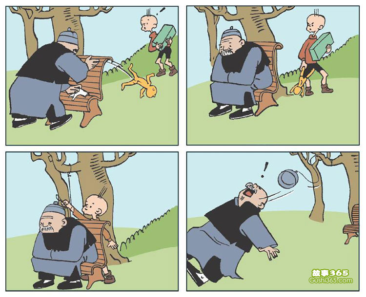 当老爷爷起身离开时,帽子却嗖地飞走了。