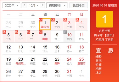 那么中秋节“偶遇”国庆节,2020年十一小长假怎么放假呢?答案是连休8天!
