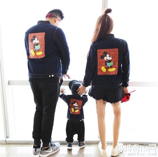 牛仔面料柔软有型,全家人穿着舒适又有范。黄色线条搭配精致银色纽扣,充满时尚感。背后的米奇大图案,引爆回头率哦。