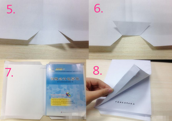 7.把书本放到包装纸里,折叠的页脚也被压在下面。