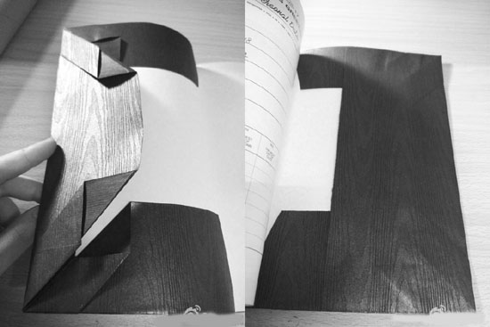 在剪裁包装纸的时候,可以多留一些边角,这样包装书皮就能留出更多的空间用以折叠漂亮的图形。这样翻开书本第一页,就能感觉赏心悦目。