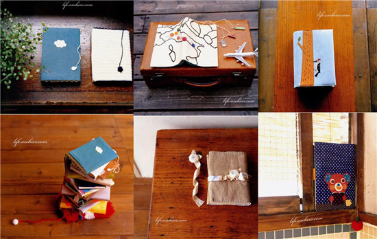 没想到吧,其实布料也能用来作书皮的。布料经久耐用,不容易损坏。唯一的缺点是,弄脏了不容易洗。