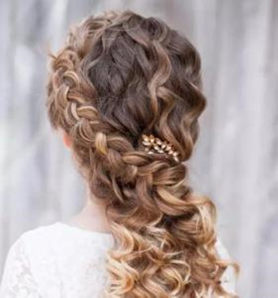 第五种:先用梳子将头发往后梳,然后分成两部分,接着从一侧刘海处开始进行蝎子辫编发,一直编到耳朵下方就可以了。接着用橡皮筋将发辫固定住,然后从扎发中分出一小束头发,缠绕扎发,以遮盖住橡皮筋,并用发夹固定。