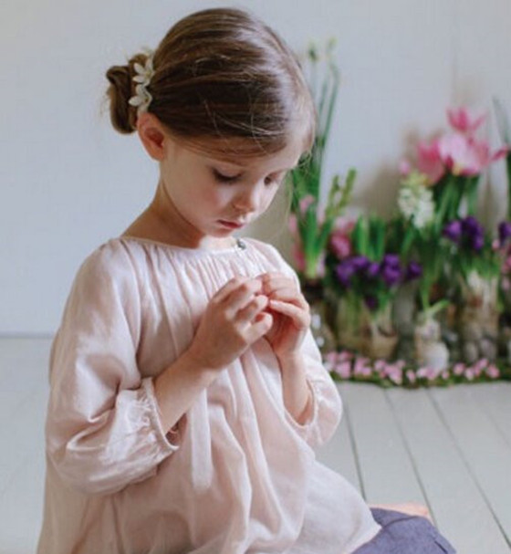 苹果头:如果你家的宝贝是长头发,不妨试试这款苹果头扎发,只需在头顶中中间扎个可爱的小辫子就可以了,配上披散的长发,不仅清新可爱更是迷人得很。