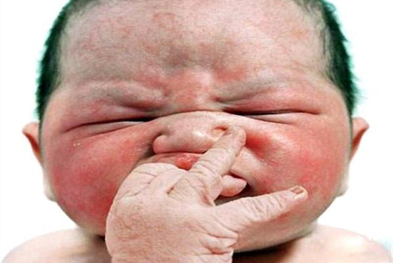 这个小宝宝由于哭泣得厉害,把小脸涨得通红,而且他的脸颊上还长了湿疹,宝宝没关系,要调理好状态。