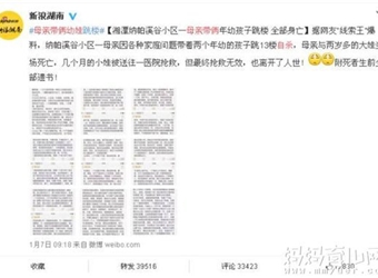 网曝1月6日晚20点左右,湖南湘潭某小区,一位年仅31岁的妈妈,在自己生日前一周,抱着两个年幼的孩子从13楼一跃而下,其中一个孩子才2岁多,一个才几个月大。…
