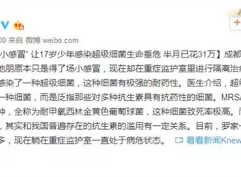 说起感冒谁不知道,提及感冒谁没患过。可是,就是这么常见的一场“感冒”,让成都一位17岁少年差眯命丧黄泉。“小感冒”竟差点夺走孩子的命,竟是超级细菌惹的…