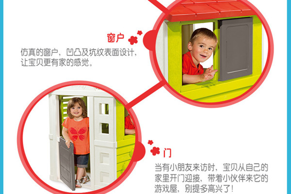3、小屋是百分百仿真设计,整个小屋边角都是圆滑型,纹路清晰,美丽大方,管家安全,不会伤到孩子们。